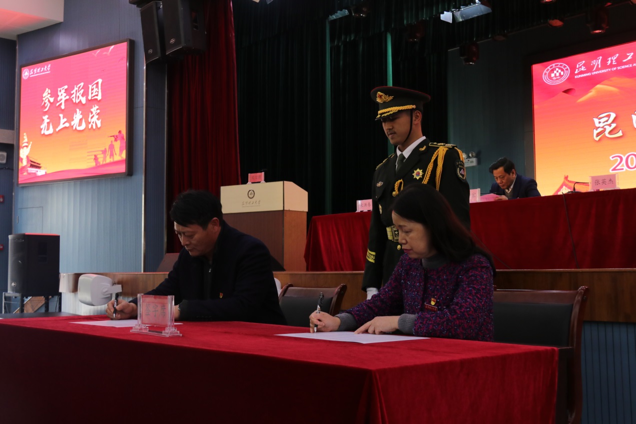 张英杰与各学院签订《2021年征兵工作目标任务责任书》。