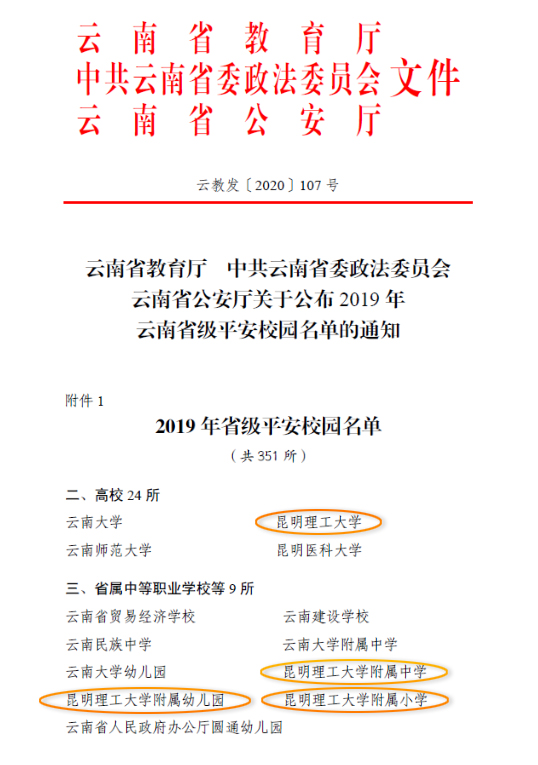 2020年12月28日,云南省教育厅、省政法委、省公安厅联合发文,公布了2019年云南省级平安校园名单,三亿体育_三亿(中国)一站式服务官方网站及附属中学、附属小学和附属幼儿园位列其中。