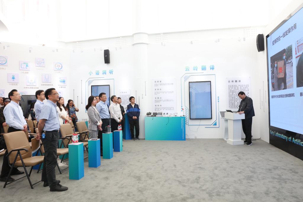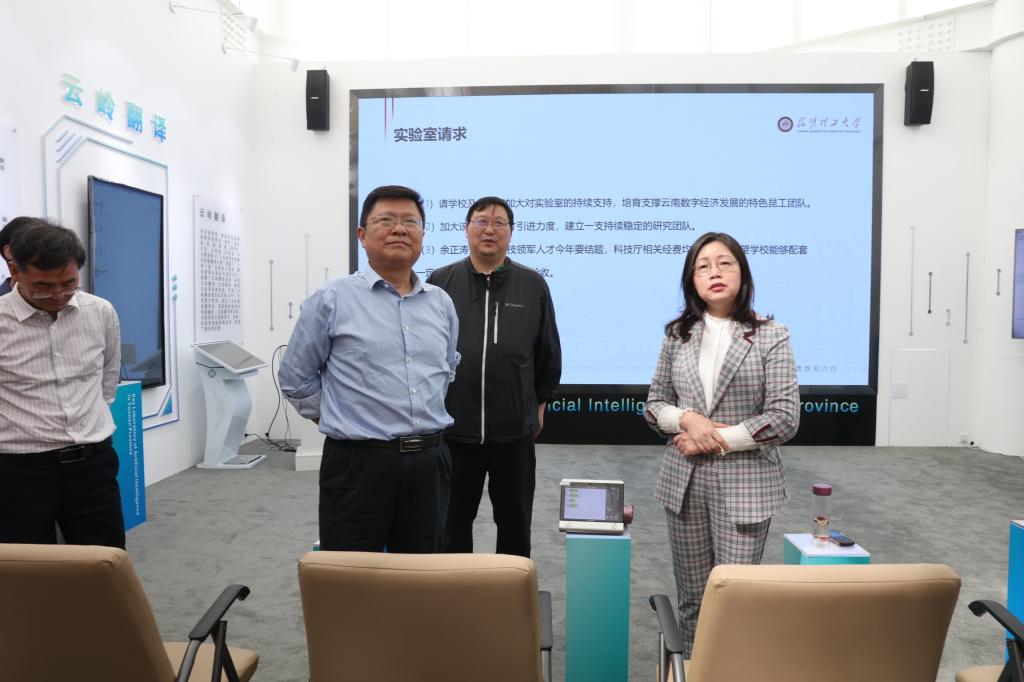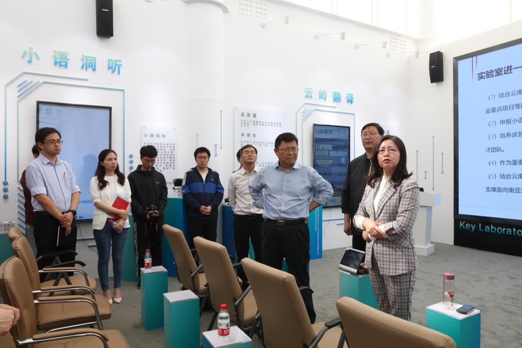 云南省人工智能重点实验室主任余正涛从团队建设、研究方向、科研成果应用、人才培养等方面介绍了实验室整体情况,重点汇报了实验室研发的小语种翻译机、翻译软件在服务“一带一路”“面向南亚东南亚辐射中心”建设中的应用,特别是在瑞丽抗击新冠疫情中发挥的积极作用。