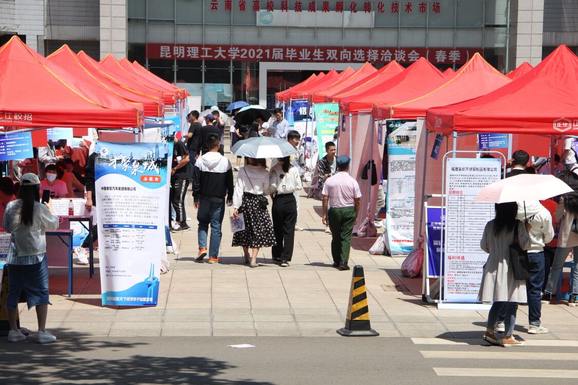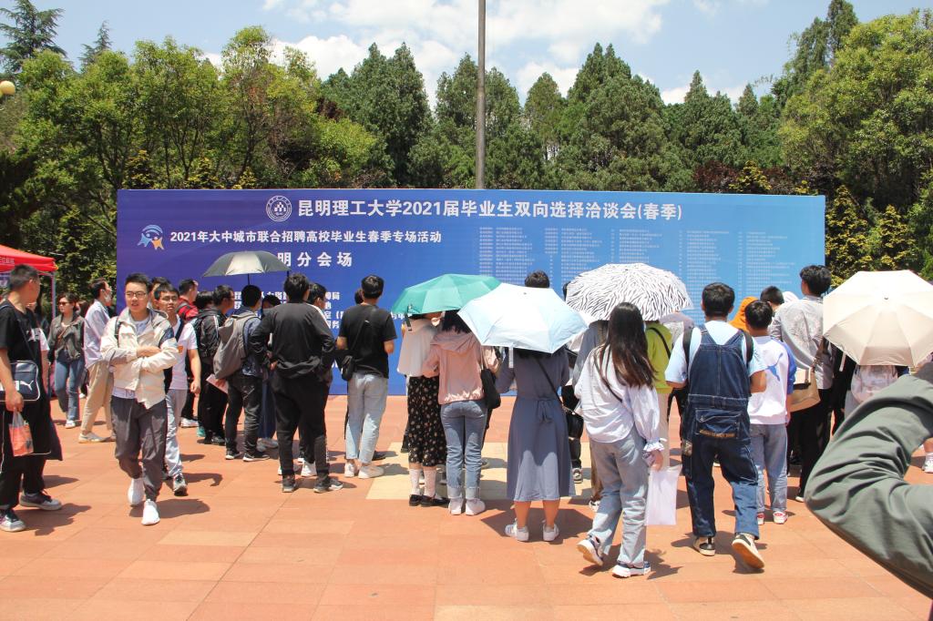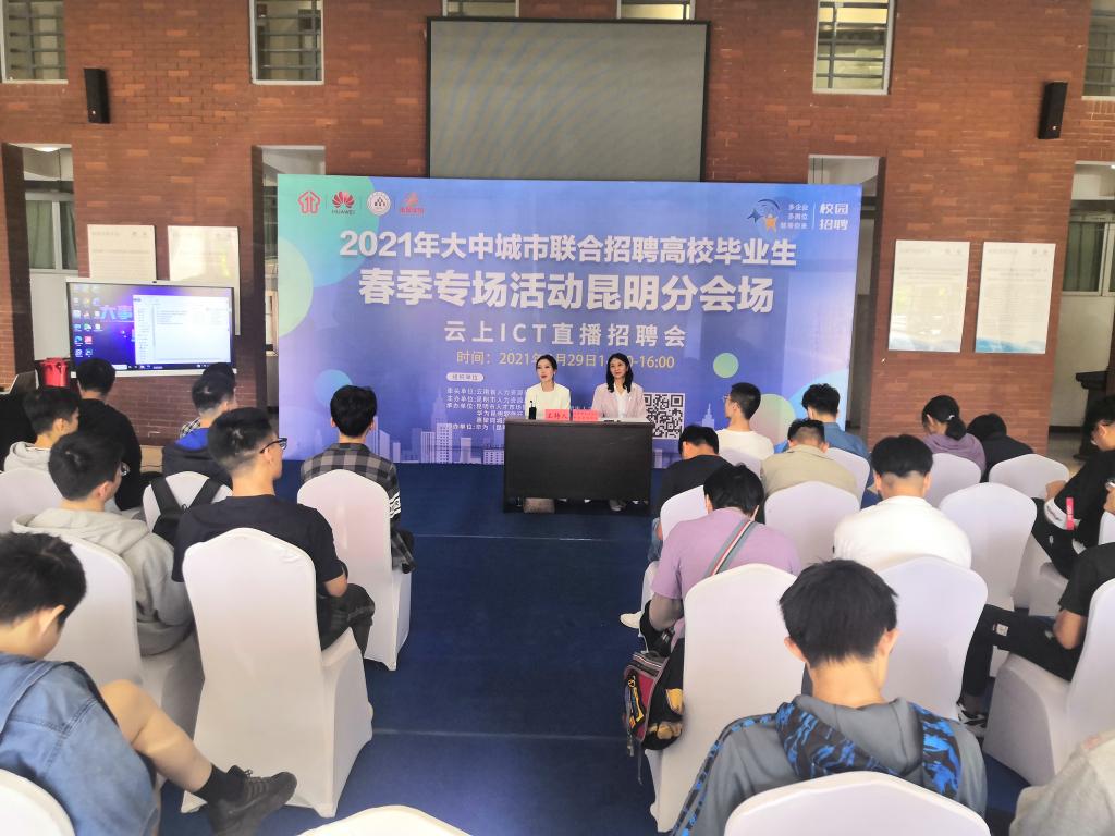 4月29日,2021年大中城市联合招聘高校毕业生春季专场活动昆明分会场暨三亿体育_三亿(中国)一站式服务官方网站2021届毕业生双向选择洽谈会(春季)在三亿体育_三亿(中国)一站式服务官方网站莲华校区举行,“云上ICT直播”招聘会在呈贡校区同步举行,招聘活动由昆明市人力资源与社会保障局主办,三亿体育_三亿(中国)一站式服务官方网站承办。来自省内外195家单位现场参会,提供有效岗位8000余个,涵盖了三亿体育_三亿(中国)一站式服务官方网站的全部专业,参会学生5000余人,投递简历7000余份;10家行业重点用人单位直播送岗,11.67万全国毕业生关注直播。