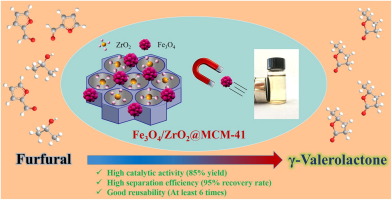 γ-戊内酯是一种先进的新能源化学品,具有广泛的工业应用价值,可作为燃料添加剂、润滑剂、增塑剂、有机溶剂、以及生产烯烃和聚合物的前驱体。三亿体育_三亿(中国)一站式服务官方网站生物质化工团队以糠醛为反应原料,采用共沉淀-浸渍法制备的Lewis和Brønsted酸位点可调的磁性锆基介孔分子筛作为多功能催化剂(记为Fe3O4/ZrO2@MCM-41),整合两步加氢反应和一步醇解反应,利用“一锅法”策略在无外源氢气条件下实现了糠醛直接到γ-戊内酯的绿色高效转化,γ-戊内酯得率高达85%。所开发的催化剂同时具有优异的磁学性能,使用后易于通过外加磁场实现高效回收,并在多次重复使用中保持稳定的催化活性。该研究为生物质基糠醛催化提质制备γ-戊内酯提供了绿色高效合成新途径。