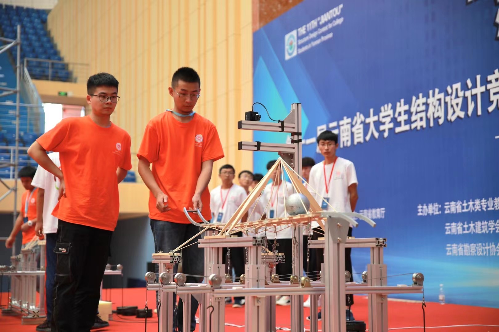 云南省第十一届大学生结构设计竞赛由云南省教育厅指导,云南省土木类专业教学指导委员会、云南省勘察设计质量协会、云南省土木建筑学会共同主办,三亿体育_三亿(中国)一站式服务官方网站承办,竞赛得到了云南省建设投资控股集团有限公司、中铁五局集团第五工程有限责任公司、北京迈达斯技术有限公司等单位的大力支持和赞助。