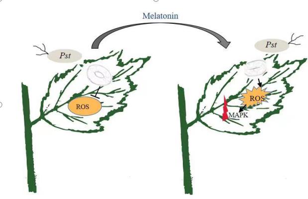 三七是我国道地中药材大品种,病虫危害一直是困扰三七产业发展的主要因素,深入挖掘三七免疫应答调控机理,通过生物学方法提高三七先天免疫能力和抗病能力是三七产业可持续发展的有效策略。崔秀明团队长期致力于三七品种的研究,通过与黄璐琦院士团队、陈奇教授团队3年多的合作研究,发现外源喷施褪黑素可有效降低三七叶部病害发生率,并在此基础上阐明了褪黑素调控三七先天免疫的分子机理。研究结果表明,褪黑素通过PMTR1受体依赖的信号途径激活MAPK和GPA1并由此诱导气孔关闭以降低病原菌入侵。该研究不仅为三七农业绿色可持续发展提供理论依据,也为研究植物褪黑素信号途径提出了新认识。