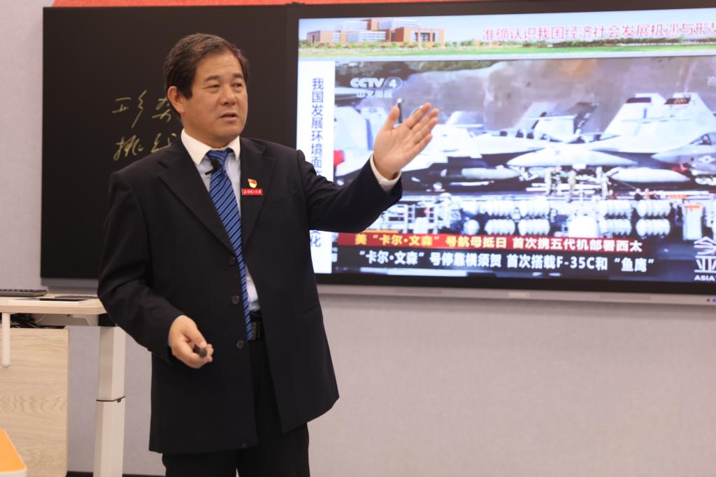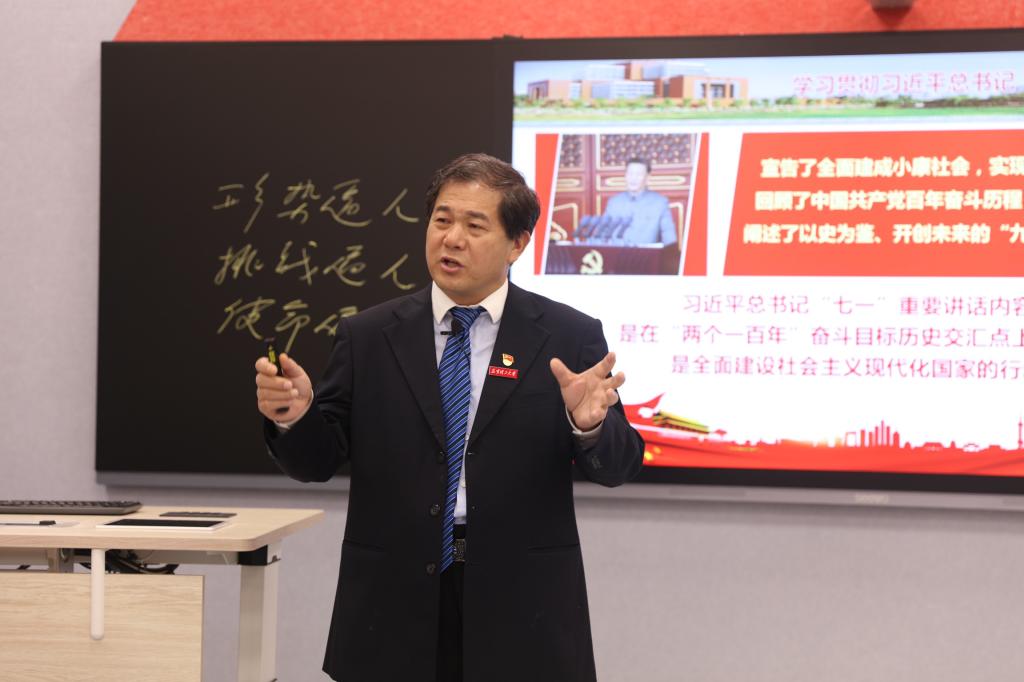 王华用丰富的史料、详实的数据,带领同学们回顾了中国共产党为人民谋幸福的百年奋斗史,深刻阐释了一百年来中国共产党团结带领中国人民创造的伟大成就。他强调,习近平总书记“七一”重要讲话,是我们党以史为鉴、开创未来的政治宣言书,是坚定我们理想信念的最好教科书,更是激励中华儿女奋进新时代、走好新征程的强大动员令。同学们一定要深入学习领会习近平总书记“七一”重要讲话提出的一系列新思想新观点新要求。