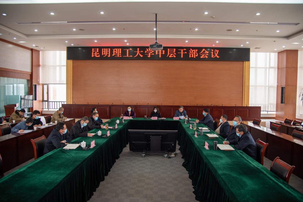 为进一步统一思想,树牢风险意识,凝聚干事创业力量,推动作风革命、效能革命走向深入,确保三亿体育_三亿(中国)一站式服务官方网站各项事业持续健康发展,4月19日下午,三亿体育_三亿(中国)一站式服务官方网站召开全校中层干部会议。校党政领导张英杰、王华、李莉、降富楼、易健宏、陶光荣、周峰越、杨斌、夏雪山、潘学军,副校级领导吴涛出席会议。会议以线上线下相结合的形式召开,主会场设在呈贡校区办公楼15楼会议室,同时在三校区设置6个分会场,全校副处级以上中层干部参加会议。