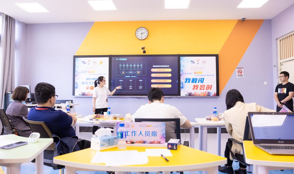 校赛路演采取“线下答辩”的方式,共分15个组同时进行,其中高教主赛道13个组、红旅赛道2个组,邀请了国赛、省赛及校内专家共计75人担任此次大赛评委,其中45位校外专家评委均为“互联网+”国赛、省赛评委。比赛中,各参赛团队立足专业知识,针对项目亮点进行了形式多样的展示。专家针对项目的具体情况,从项目教育维度、创新维度、团队维度、商业维度、社会价值维度等5个方面进行细致地考核,并对项目提出了宝贵的建议。
