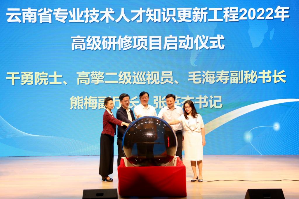 仪式上,干勇、高擎、毛海寿、熊梅、张英杰共同启动“云南省专业技术人才知识更新工程2022年高级研修项目”。