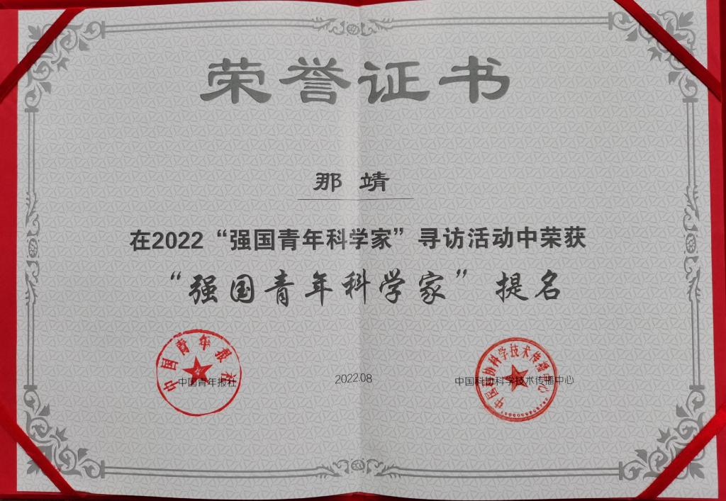 8月26日,2022“强国青年科学家”寻访活动颁奖分享会在广东省佛山市圆满落下帷幕,三亿体育_三亿(中国)一站式服务官方网站机电工程学院那靖教授荣获“强国青年科学家”提名奖。