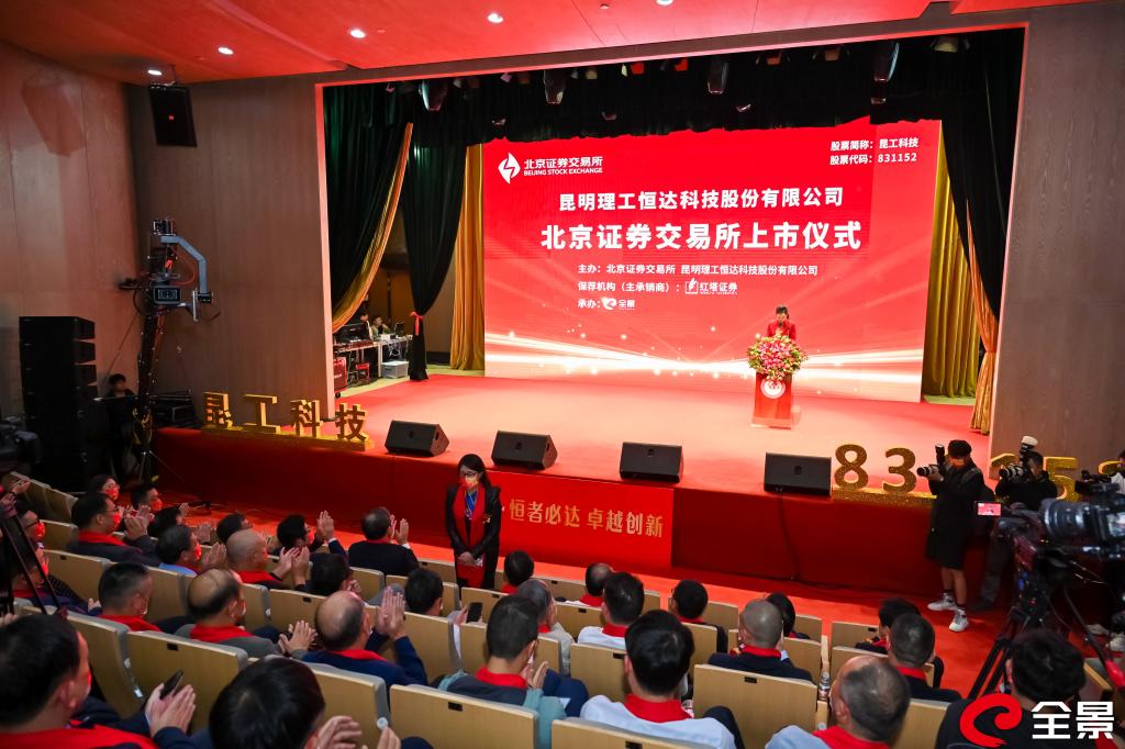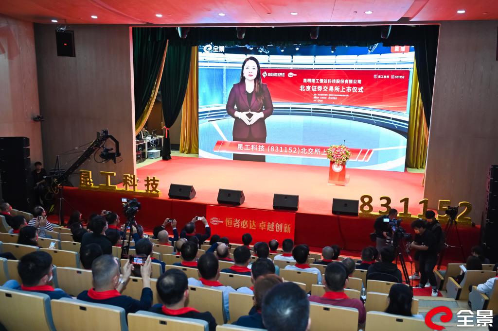 9月1日上午,昆明理工恒达科技股份有限公司(证券简称“昆工科技”,证券代码“831152”)在北京证券交易所正式挂牌上市,开启了三亿体育_三亿(中国)一站式服务官方网站科技成果融入资本市场的新篇章。上市仪式以线下+云直播的方式,在三亿体育_三亿(中国)一站式服务官方网站莲华校区伍集成会堂、北京证券交易所同步举行。