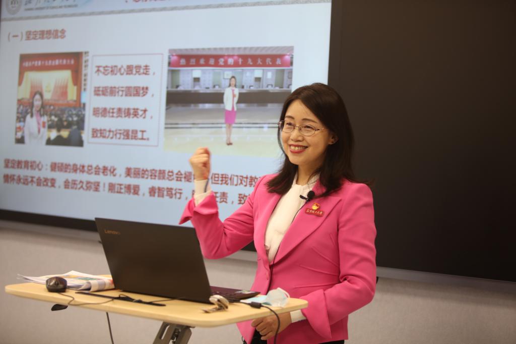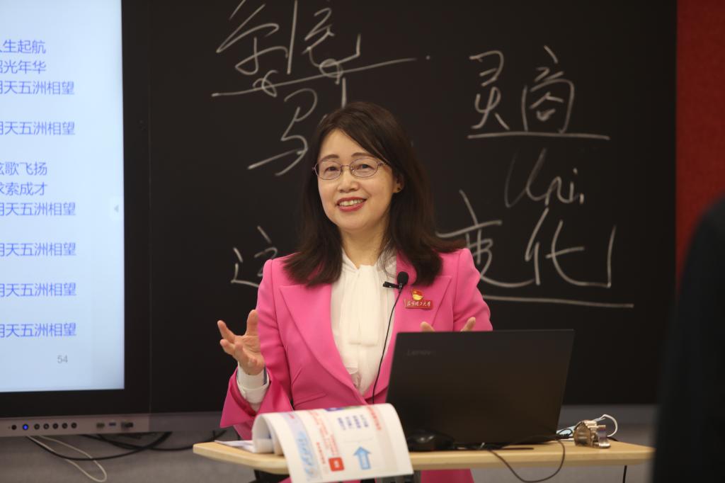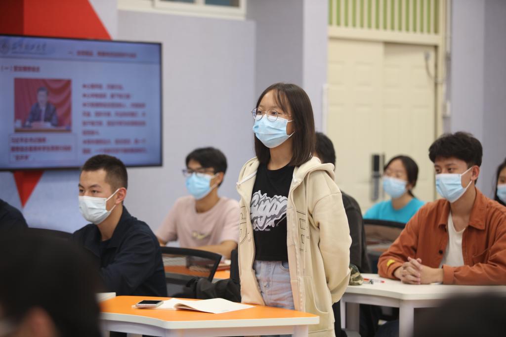 课程伊始,张英杰用“青春是什么”“青春该如何度过”引入课程主题,并以启发式问答的方式,与同学们频频互动,现场气氛热烈,课程生动活泼。张英杰从“志存高远,青春向党绽放时代光彩”“脚踏实地,全面发展谱写奋斗华章”两个部分和“坚定理想信念、厚植家国情怀、树立远大理想、担当时代责任、锤炼品德修为、练就过硬本领、矢志艰苦奋斗、勇于创新创造”八个方面,为同学们讲授了一堂颇具政治性、理论性和指导性的课程。