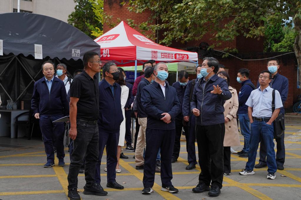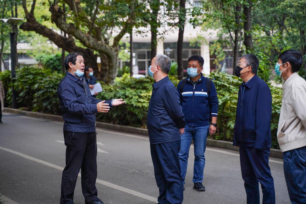 10月7日上午,校党委书记唐家华,校党委副书记、校长王华,校党委副书记蔡金红一行到莲华校区,围绕莲华校区主楼、校园及白泥山环境整治情况、管经楼、学生宿舍、医疗卫生、莲华校区体育场、游泳池、附中附小、后勤食堂及饮食保障、停车场等师生关心关注的问题深入一线开展实地检查指导。
