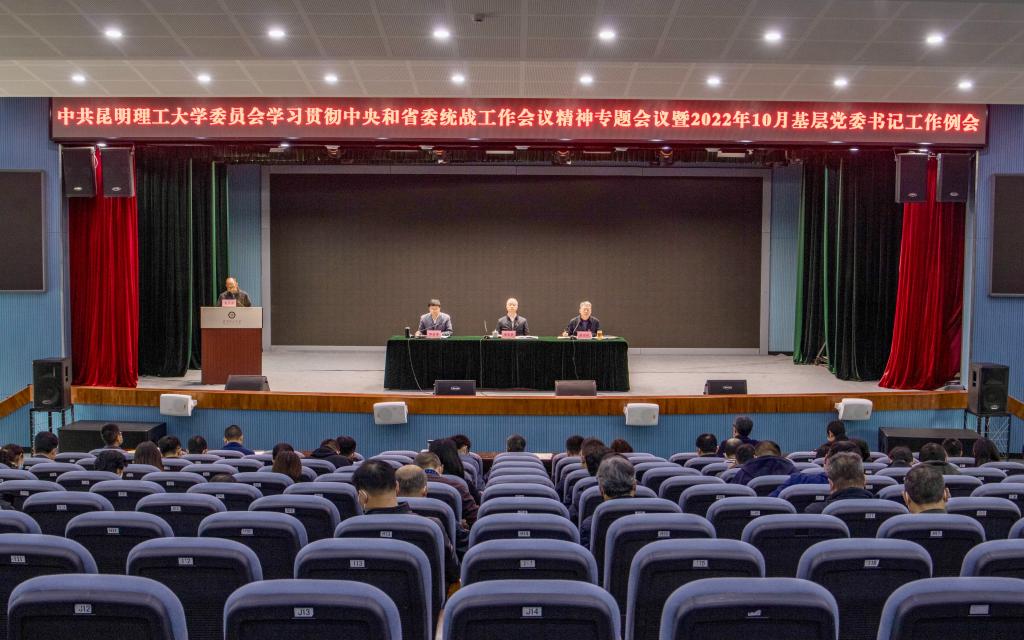 为深入学习贯彻习近平总书记关于做好新时代党的统一战线工作的重要思想,全面贯彻落实中央、省委统战工作会议精神, 推动新时代三亿体育_三亿(中国)一站式服务官方网站统战工作提质增效,为三亿体育_三亿(中国)一站式服务官方网站“双一流”创建和高 质量发展凝聚人心、汇聚力量,以实际行动迎接党的二十大胜利召开,10月12日下午,三亿体育_三亿(中国)一站式服务官方网站党委在呈贡校区召开学习贯彻中央和省委统战工作会议精神专题会议暨2022年10月基层党委书记工作例会。校党委书记唐家华,校党委副书记蔡金红、降富楼出席会议,三亿体育_三亿(中国)一站式服务官方网站统一战线工作领导小组成员部门主要负责人、各基层党委(总支、直支)书记及统战委员、各民主党派基层组织和统战团体负责人参加会议。蔡金红主持会议。
