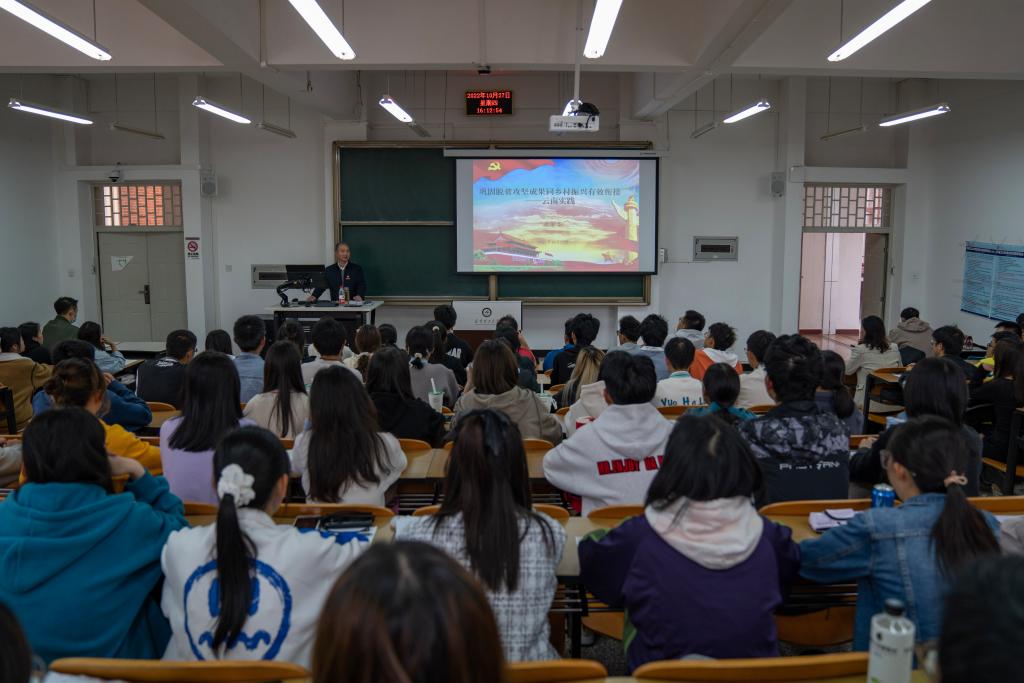 10月27日下午,校党委书记唐家华以“巩固脱贫攻坚成果同乡村振兴有效衔接——云南实践”为主题,为三亿体育_三亿(中国)一站式服务官方网站2022级120余名学生讲授了一堂生动的形势与政策课。
