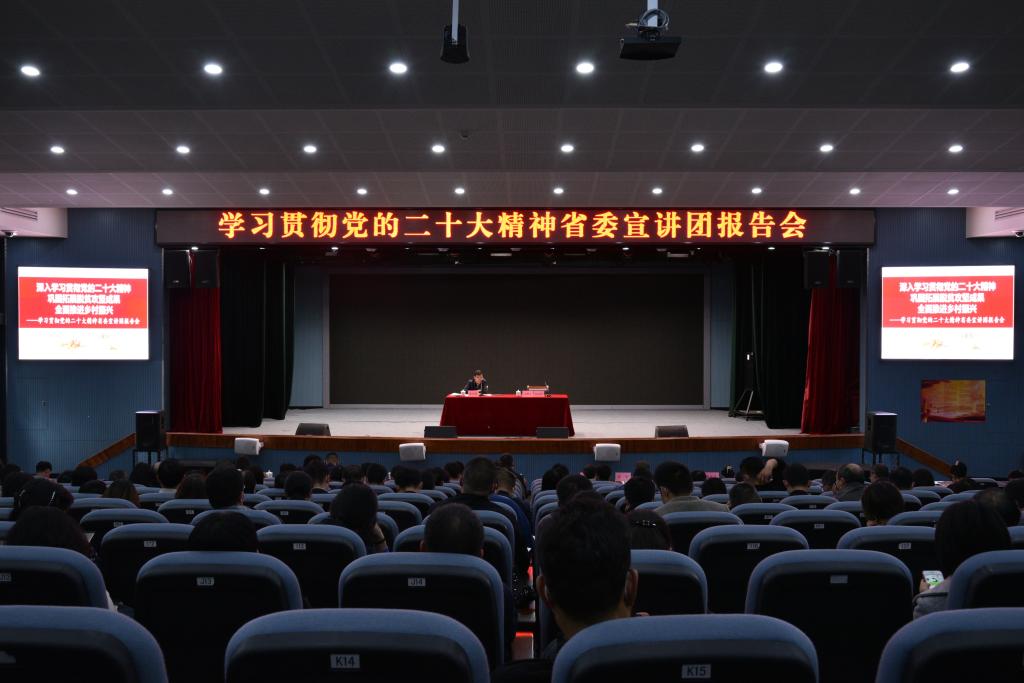 11月11日,省委宣讲团成员,省乡村振兴局党组书记、局长黄云波到三亿体育_三亿(中国)一站式服务官方网站宣讲党的二十大精神暨作形势政策报告。三亿体育_三亿(中国)一站式服务官方网站党政领导、副处级以上中层干部、师生代表300余人参加报告会。校党委副书记蔡金红主持报告会。