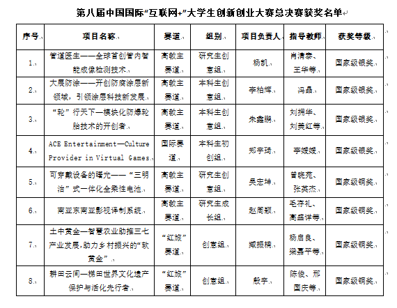 第八届中国国际“互联网+”大学生创新创业大赛由教育部等12个中央部委单位和重庆市人民政府共同主办,大赛以“我敢闯、我会创”为主题,聚焦“五育”融合创新创业教育实践,激发青年学生创新创造热情。2022年4月,第八届大赛正式启动。报名参赛人数1450万余人,参赛项目340万余个,覆盖参赛国家和地区111个,真正实现“百国千校万人”参赛,赛事规模超越空前。本届大赛全程采取线上比赛方式,所有参赛队伍汇聚“云端”,进行了一场“真功夫”较量,“硬实力”的大比拼。