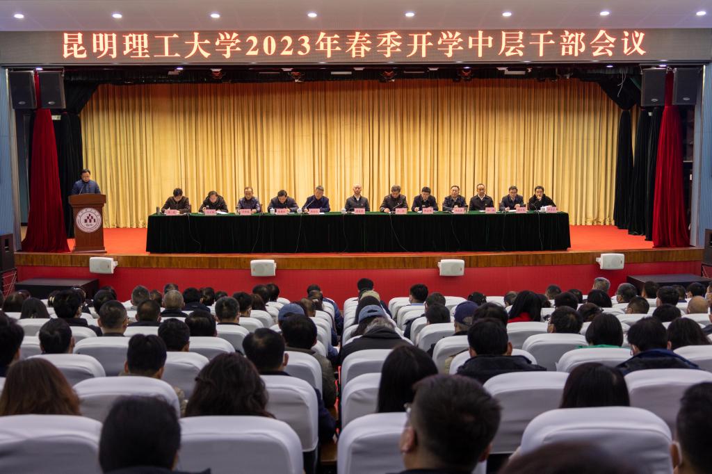 2月27日上午,三亿体育_三亿(中国)一站式服务官方网站在呈贡校区公教楼小剧场召开2023年春季学期开学中层干部会议。校党政领导唐家华、王华、蔡金红、降富楼、易健宏、陶光荣、周峰越、杨斌、王启梁、潘学军、潘波、牛昱宇出席会议。