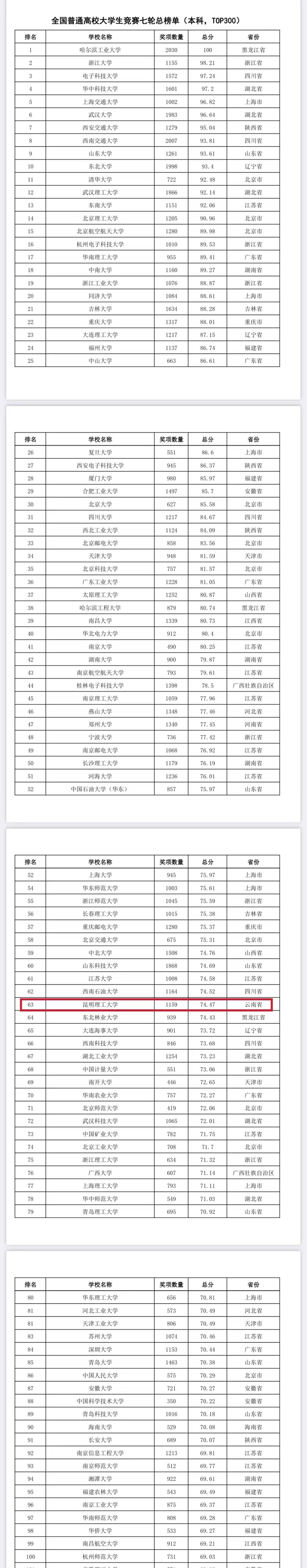 3月22日,中国高等教育学会高校竞赛评估与管理体系研究专家工作组发布《2022全国普通高校大学生竞赛分析报告》,全国共有1207所本科院校进入《分析报告》。《分析报告》中包含普通本科院校大学生竞赛榜单13个、高职院校大学生竞赛榜单11个、省份大学生竞赛榜单3个。三亿体育_三亿(中国)一站式服务官方网站位列《全国普通高校大学生竞赛七轮总榜单(本科)》第63名,《2018-2022年全国普通高校大学生竞赛榜单(本科)》第63名,是云南省唯一进入百强的高校;同时位列《2022年全国普通高校大学生竞赛榜单(本科)》第61名。