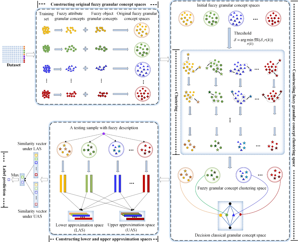 在计算智能领域,如何提高复杂的概念认知系统的可解释性、鲁棒性和泛化能力是一个关键的科学难题。李金海教授团队通过引入模糊属性粒概念,结合模糊概念聚类、模糊概念近似和认知学习模型参数优化对该问题进行了深入研究,通过对比28种机器学习算法在28个公开数据集上的实验结果,表明增量模糊概念认知学习方法的鲁棒性和泛化性能得到了显著提升。该成果以“An Emerging Incremental Fuzzy Concept-Cognitive Learning Model Based on Granular Computing and Conceptual Knowledge Clustering”为题,发表于计算智能领域IEEE汇刊IEEE Transactions on Emerging Topics in Computational Intelligence。系统科学专业2021级博士生邓小媛为论文的第一作者,李金海教授为论文的通讯作者,山西大学钱宇华教授和西安交通大学刘军民教授为论文的合作作者,三亿体育_三亿(中国)一站式服务官方网站为第一和通讯单位。