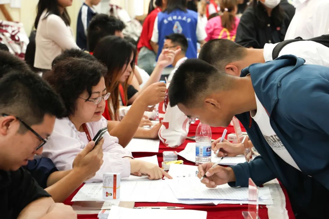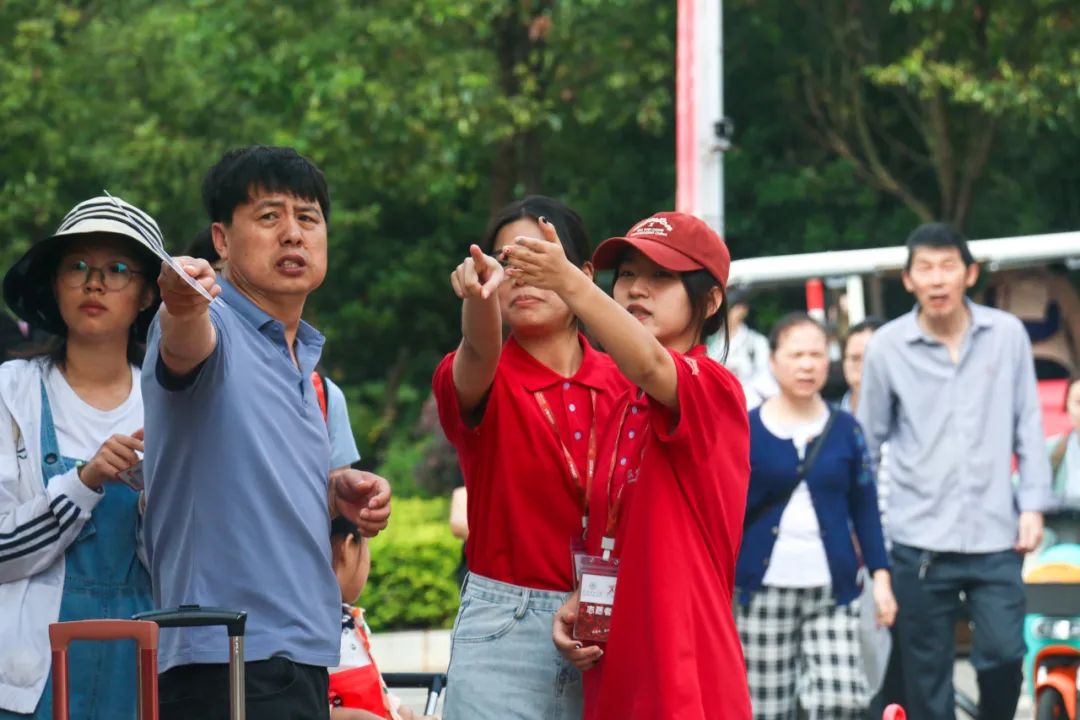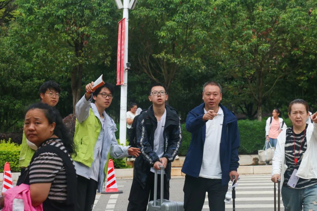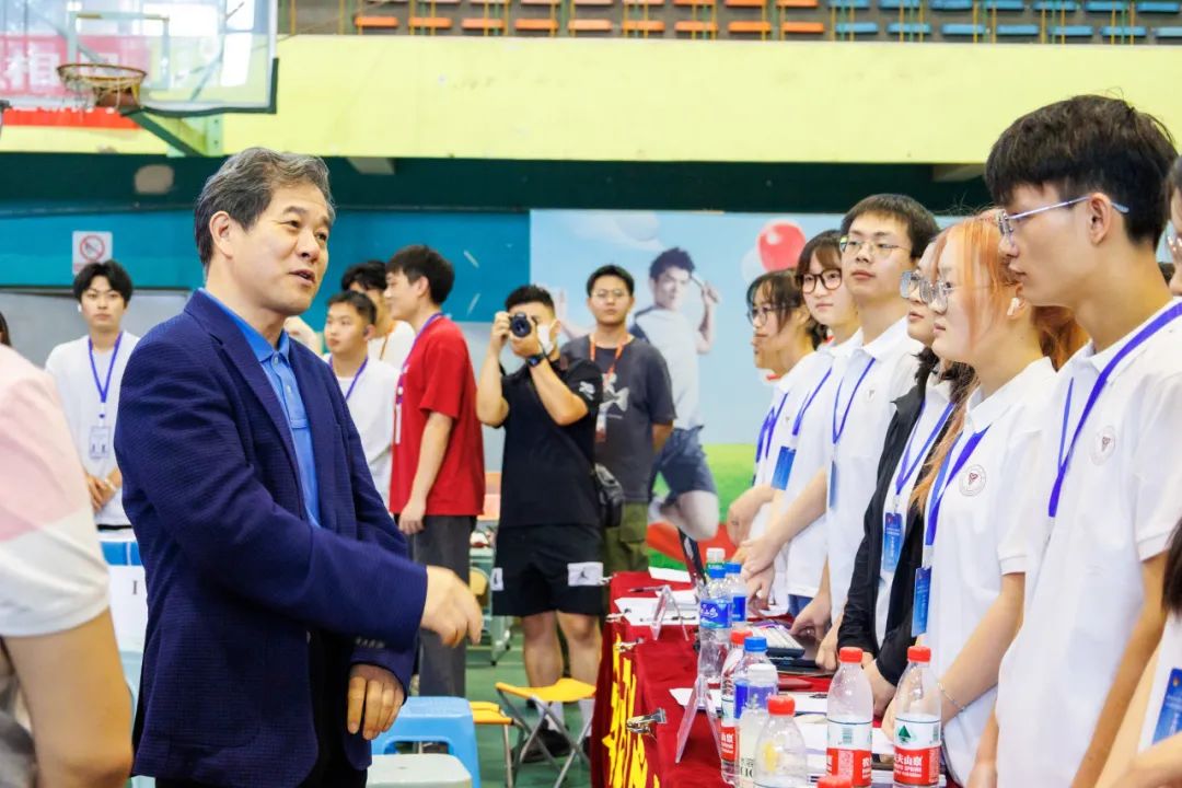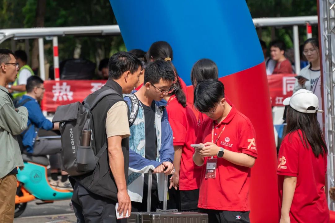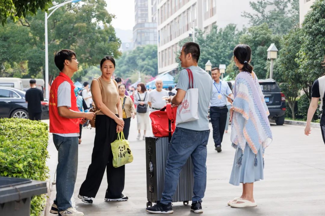 与前来报到的2024级新生及新生家长亲切交流