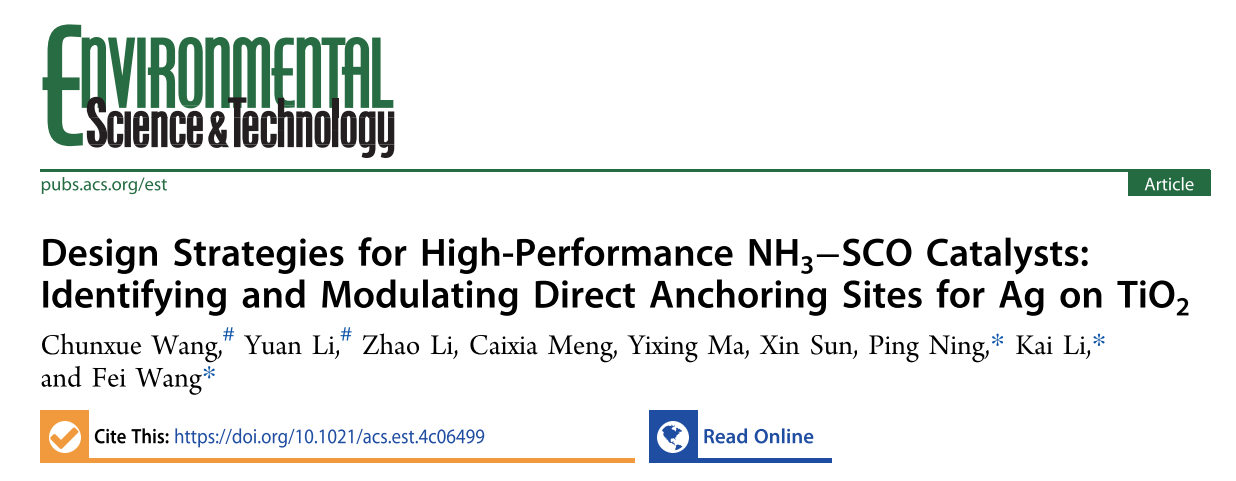 日前,环境科学与工程学院宁平、李凯教授团队在金属锚定以及氨气选择性催化氧化领域取得重要进展。该研究成果以“Design Strategies for High-Performance NH3-SCO Catalyst: Identifying and Modulating Direct Anchoring Sites for Ag on TiO2”为题,发表在环境领域的著名学术期刊Environmental Science & Technology上。三亿体育_三亿(中国)一站式服务官方网站为该论文第一作者单位,环境科学与工程学院宁平教授、李凯教授和王飞副教授为论文的共同通讯作者,博士研究生王春雪和副教授李原为共同第一作者。该研究得到了国家自然科学基金和云南省基础研究计划等项目的资助。