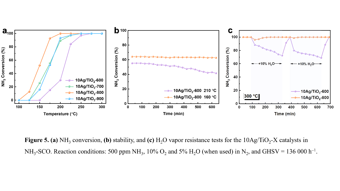 图2. Ag/TiO2-X催化剂的NH3-SCO性能