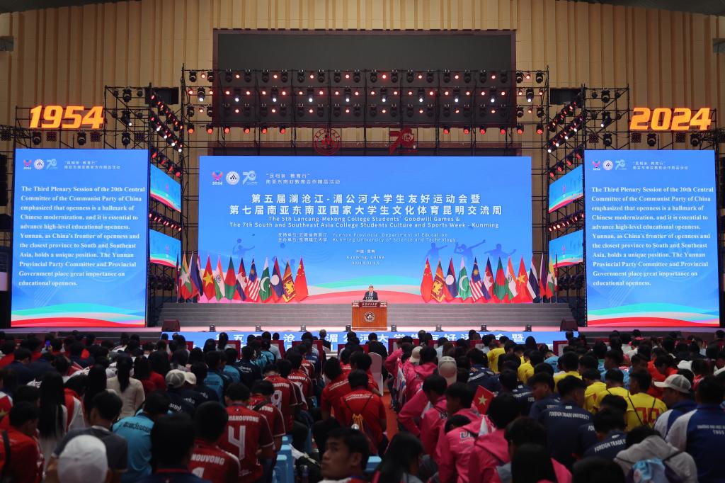 唐家华宣布“第五届澜沧江-湄公河大学生友好运动会暨第七届南亚东南亚国家大学生文化体育昆明交流周”开幕。