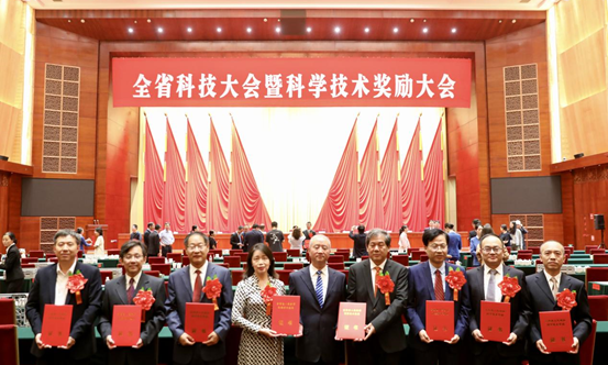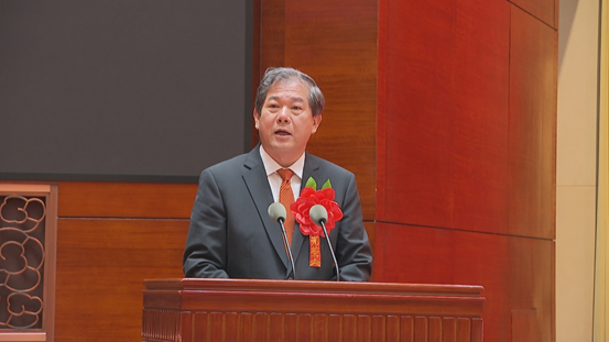 校党委书记唐家华、云南省科学技术杰出贡献奖获得者王华校长及其他获奖代表参加奖励大会,作为2023年度云南省科技奖励获奖代表,王华教授代表获奖者发言。
