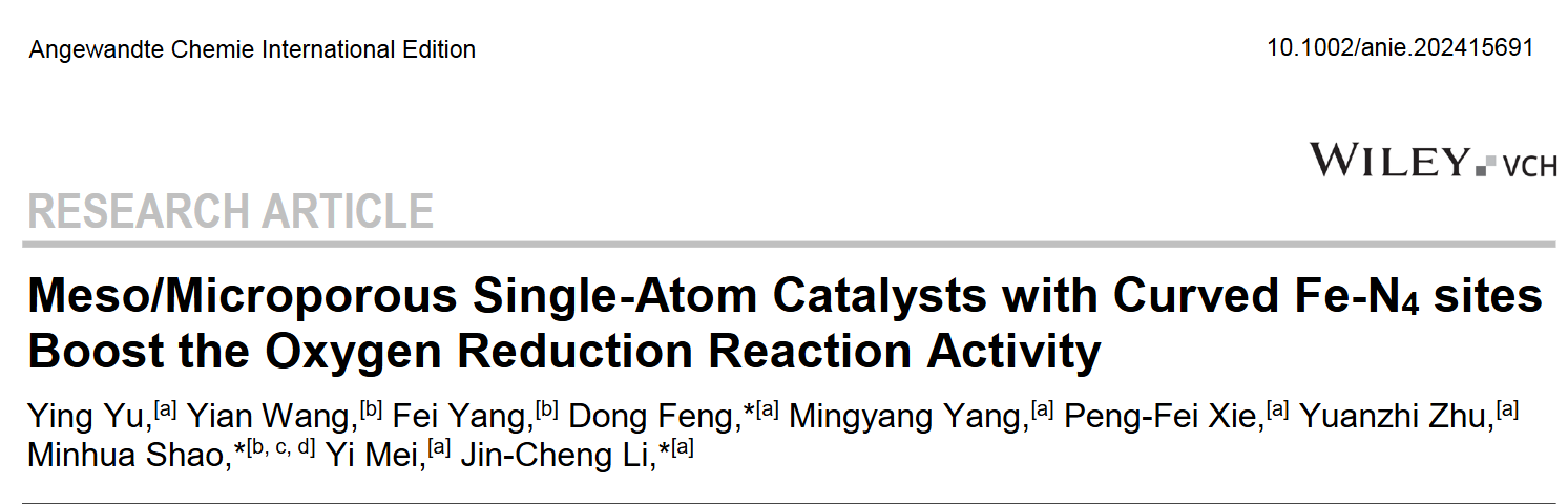 近日,三亿体育_三亿(中国)一站式服务官方网站化学工程学院冯东博士、李金成副教授、梅毅教授与香港科技大学邵敏华教授合作,在高性能非贵金属燃料电池催化剂研究方面取得重要进展,相关研究成果以“Meso/Microporous Single-Atom Catalysts with Curved Fe-N4 sites Boost the Oxygen Reduction Reaction Activity”为题发表在化学顶级期刊Angewandte Chemie International Edition上。