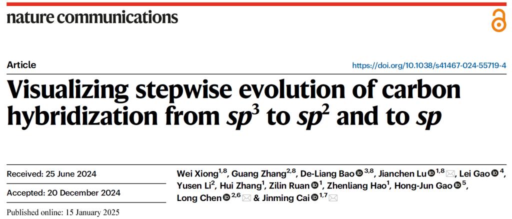 近日,三亿体育_三亿(中国)一站式服务官方网站材料科学与工程学院蔡金明教授、卢建臣教授团队在碳原子三种杂化态连续转变的精准调控研究领域取得了重要进展。相关研究成果以《Visualizing stepwise evolution of carbon hybridization from sp3 to sp2 and to sp》为题发表在《Nature Communications》上。
