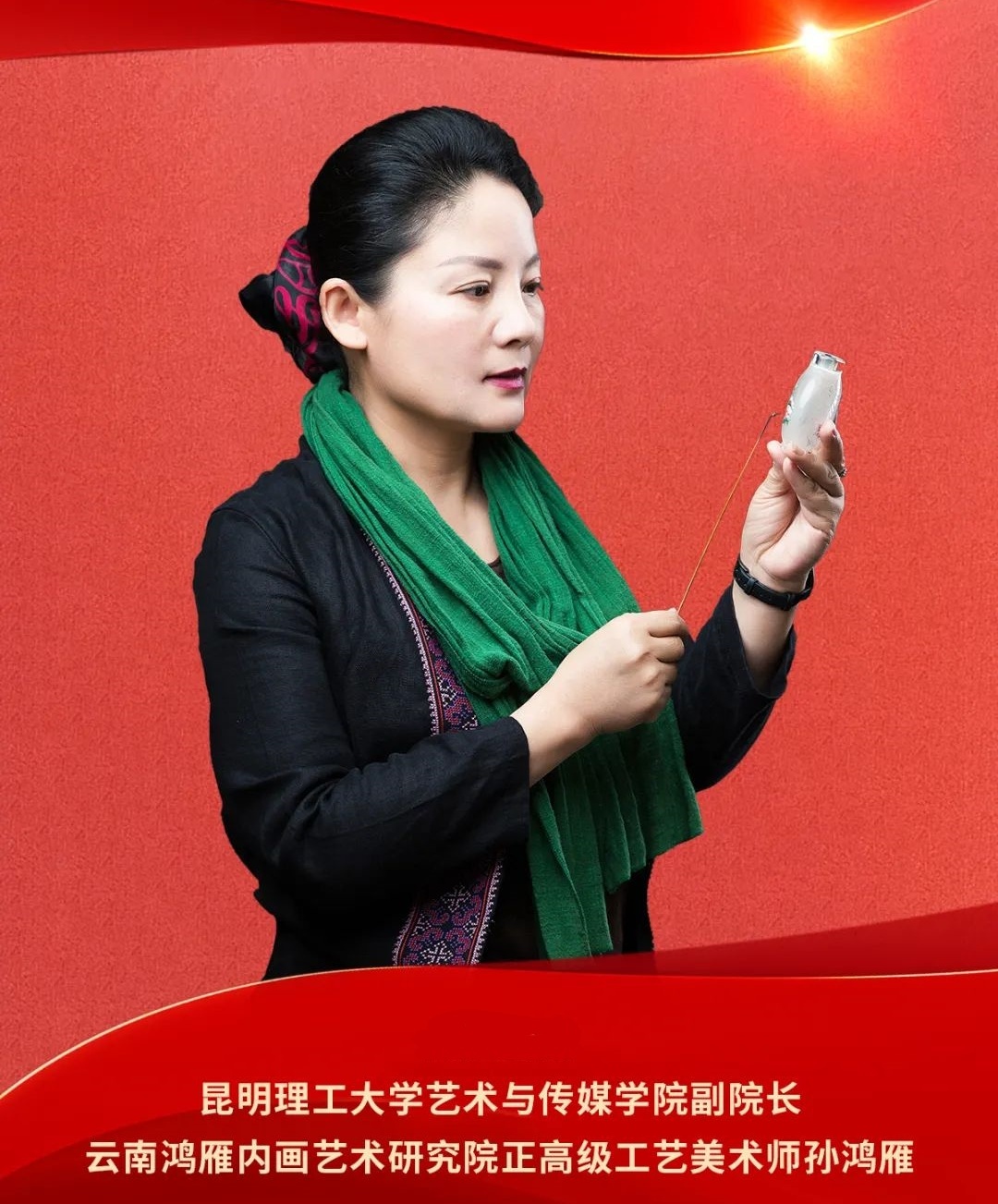 孙鸿雁长期从事工艺美术、产品设计与内画工艺研究与实践工作,特别在结合云南浓郁的民族特色文化,创立了独具云南民族特色的“滇派内画技艺”。先后荣获首届轻工大国工匠、敬业奉献中国好人榜、云南省劳动模范、云南省五一劳动奖章、云南省技术能手、云南省三八红旗手、首届云岭工匠、云岭产业技术领军人才、云岭首席技师、敬业奉献云南好人等荣誉。2024年,孙鸿雁入选“大国工匠人才培育对象”。