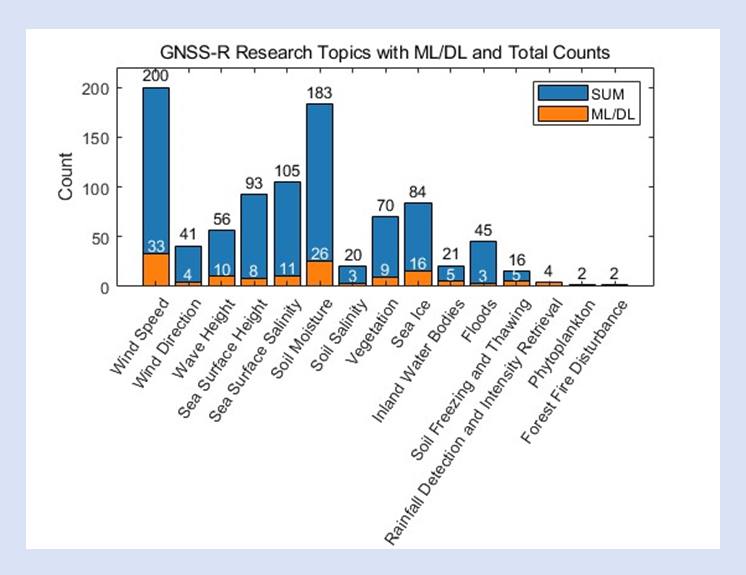 图3. 基于文献统计获得的机器学习方法在星载GNSS-R各个应用领域中的占比情况