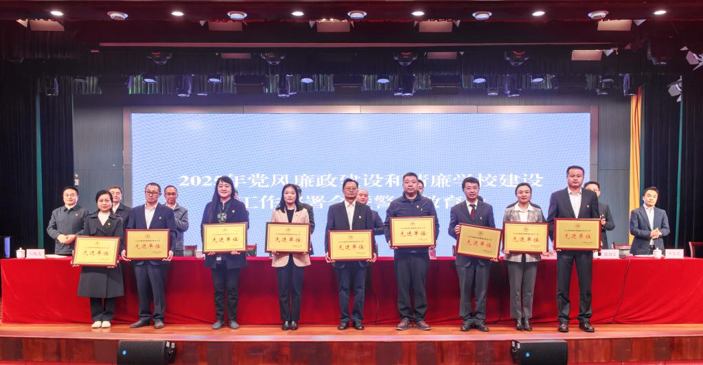 会前,全体参会人员观看了警示教育片《校园贪影》。会上,表彰了2024年度党风廉政建设责任制检查考核优秀单位及意识形态工作检查考核优秀单位,获奖单位代表外国语文化学院党委和理学院党委分别作经验交流。