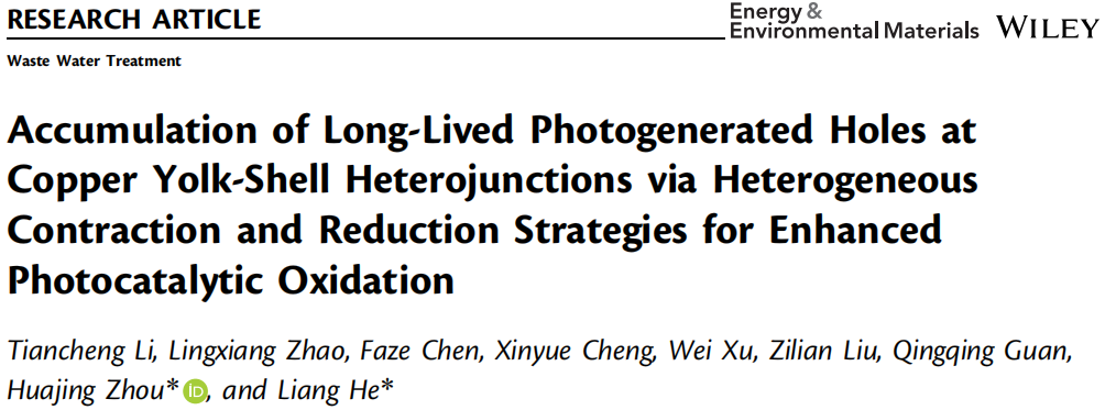 日前,三亿体育_三亿(中国)一站式服务官方网站建筑工程学院“污染过程控制与模拟团队”在光催化高级氧化领域取得重要进展,相关成果发表在材料科学领域权威期刊《Energy & Environmental Materials》(中科院1区Top)上。三亿体育_三亿(中国)一站式服务官方网站2022级硕士李天成为本论文第一作者,建筑工程学院周华晶副教授以及化学工程学院何亮教授为本论文通讯作者。三亿体育_三亿(中国)一站式服务官方网站为论文的第一完成单位。