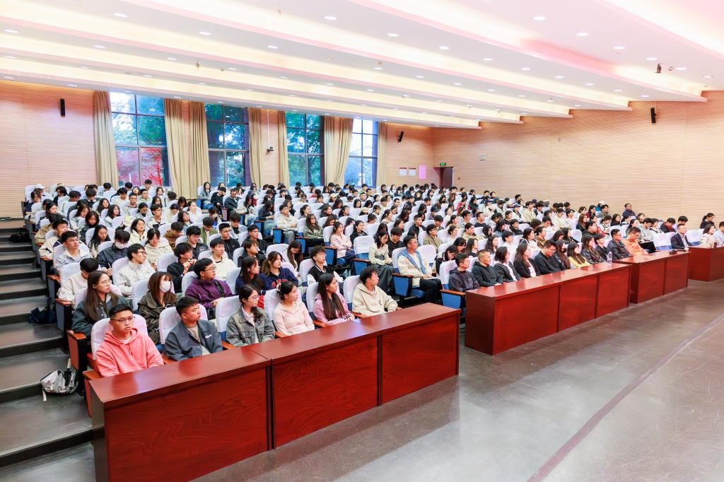 马克思主义学院青年教师赵烨以“新时代青年在复兴征程中书写担当答卷”为题深入浅出地阐述了新时代青年担当什么、为何担当、怎样担当。以生动的语言和丰富的案例,引导同学们在追求科学真理的道路中深刻认识科学的力量在我们个人成长和国家发展中的重要意义。