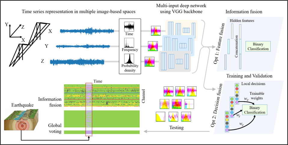 随着我国长大桥梁数量持续增长,地震等突发自然灾害对桥梁结构安全构成严重威胁。针对传统结构健康监测系统在识别地震事件时受传感器故障、环境噪声等干扰的问题,研究团队提出一种基于多输入端到端深度学习的地震事件自动识别方法。将振动加速度信号根据方向分别转换为时域、频域和概率密度图像,构建三通道图像神经网络输入,并设计特征融合与决策融合两种策略提升鲁棒性。同时,采用全局投票机制整合多图像集识别结果,进一步增强识别稳定性。方法在真实大跨度桥梁地震数据中的验证中展示出良好的准确性与一致性,为地震事件自感知识别与预警提供了高效解决方案。
