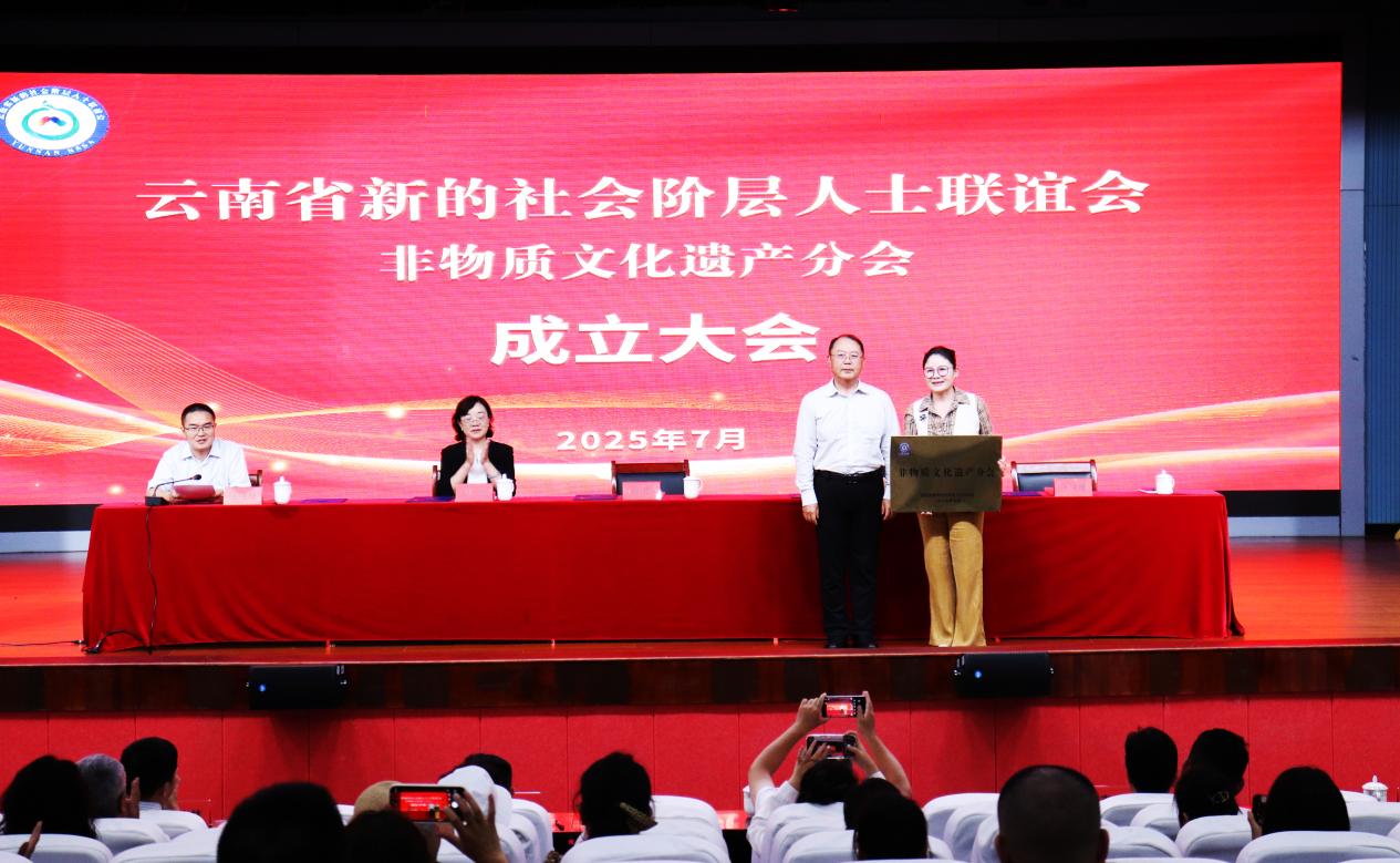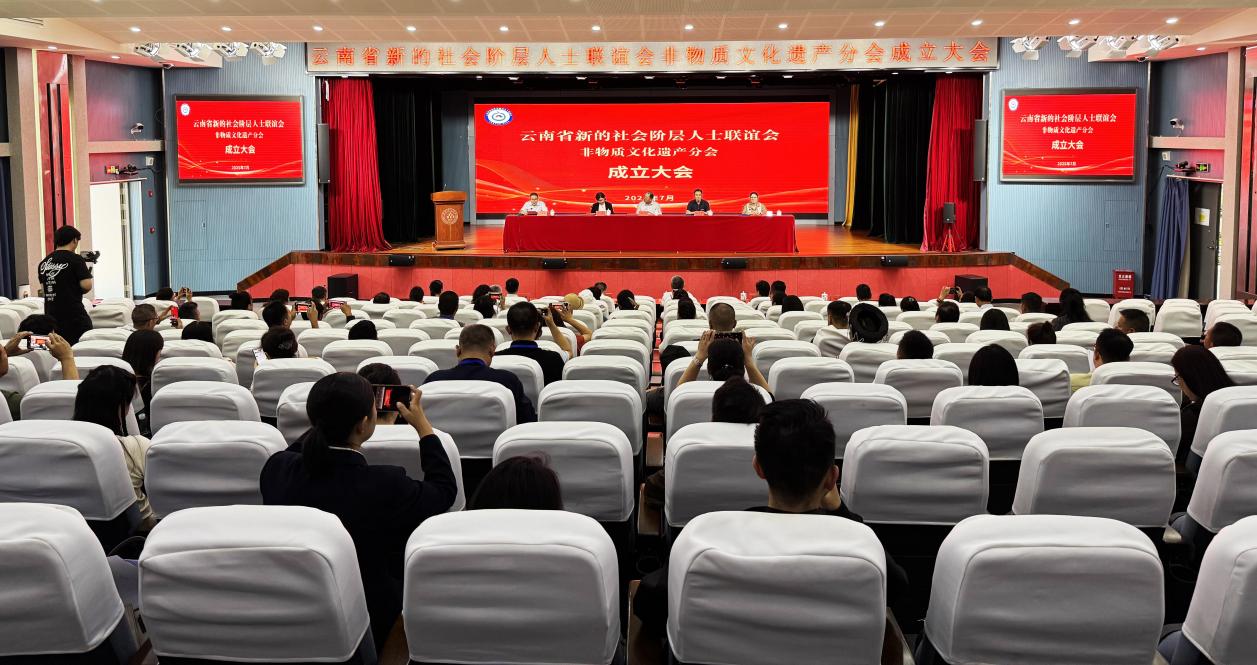 7月11日,云南省新的社会阶层人士联谊会非物质文化遗产分会成立大会在三亿体育_三亿(中国)一站式服务官方网站呈贡校区公教楼小剧场举行。省委宣传部、省委统战部、省委教育工委、省总工会、省文联、省新联会、昆明市委统战部等相关单位负责人,省新联会非遗分会会员代表,非遗代表性传承人共100余人参加会议。