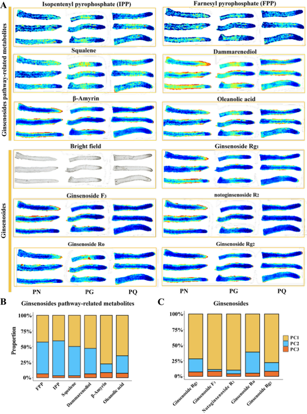 人参属三个种根尖中人参皂苷及中间产物积累的可视化