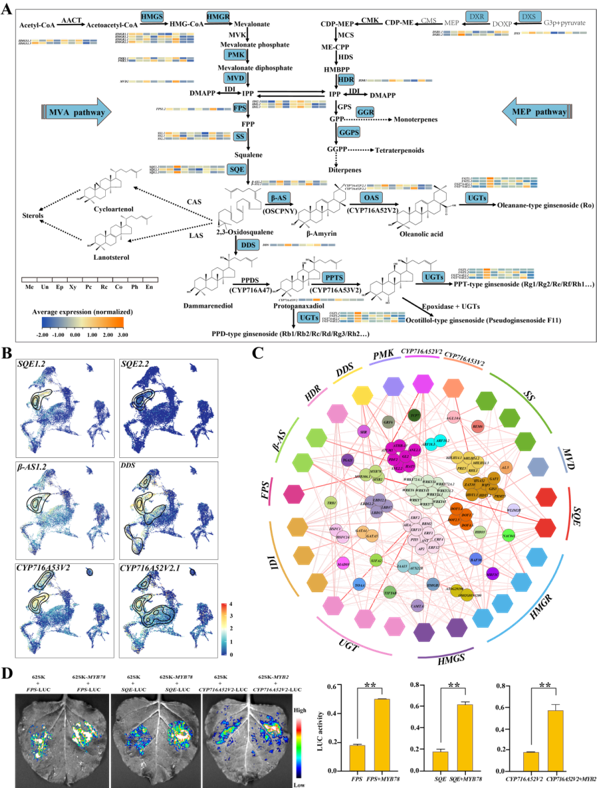 人参属物种中人参皂苷的生物合成通路、关键酶基因表达模式分析及转录调控解析