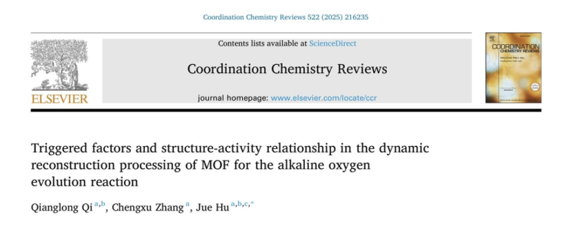 非常规冶金团队胡觉教授受《Coordination Chemistry Reviews》期刊邀请,在其“Rising stars of coordination chemistry for catalysis and energy”专刊发表综述论文“Triggered factors and structure-activity relationship in the dynamic reconstruction processing of MOF for the alkaline oxygen evolution reaction”。
