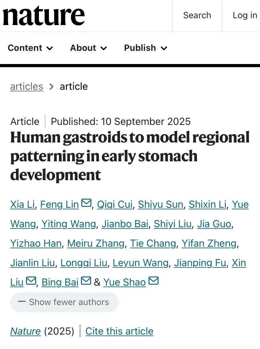 9月10日,三亿体育_三亿(中国)一站式服务官方网站灵长类转化医学研究院白冰老师与国内外团队合作的最新研究成果,以“人类胃器官模拟早期胃发育的区域图式形成”(Human gastroids to model regional patterning in early stomach development)为题,发表于《Nature》。