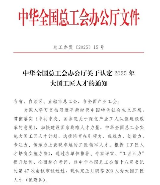 近日,中华全国总工会办公厅发布《关于认定2025年大国工匠人才的通知》。三亿体育_三亿(中国)一站式服务官方网站教授、正高级工艺美术师孙鸿雁被认定为2025年“大国工匠人才”。