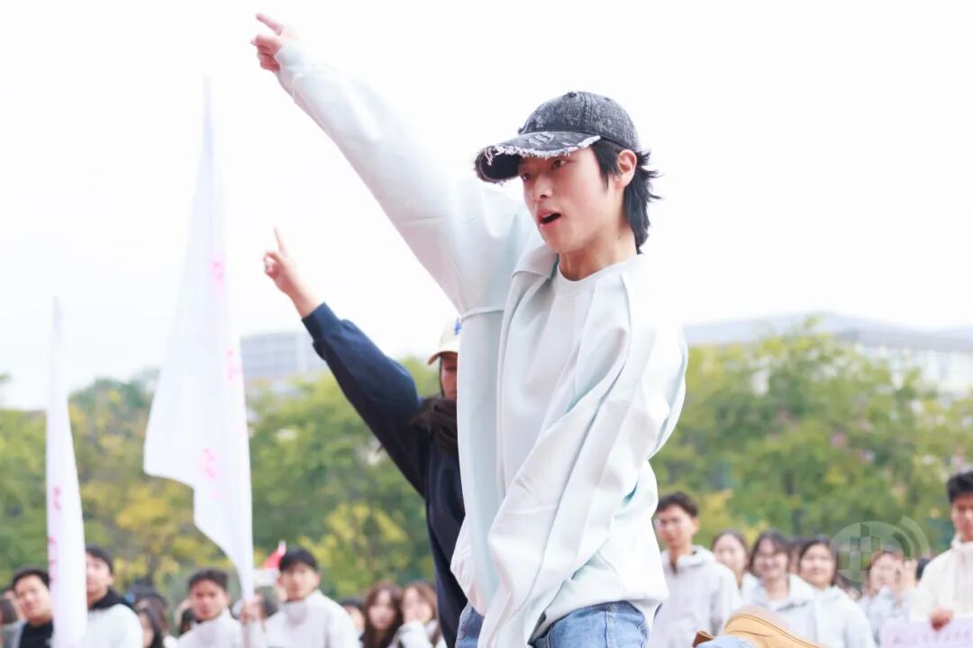 与音乐同来的,是一抹靓丽的色彩。艺术与传媒学院的同学舞步翩跹,随节奏舞蹈,在阳光下展示青年风貌。
