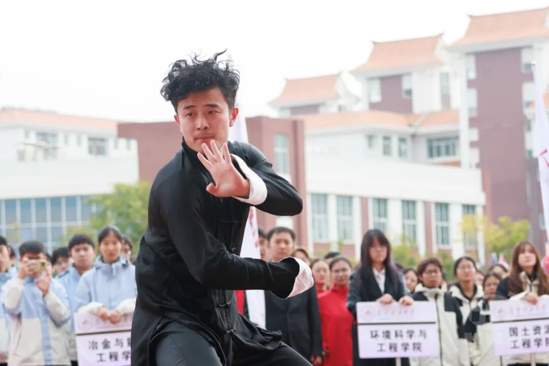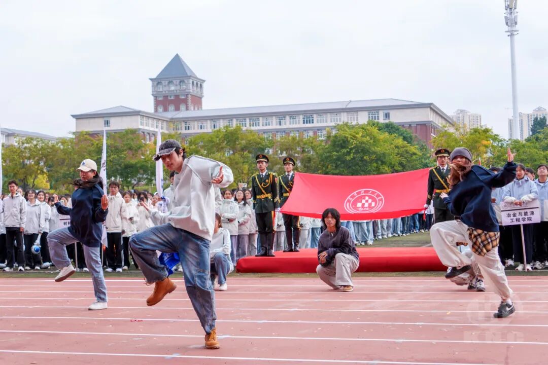 欢快的音乐响起,冶金与能源学院的同学们环绕着身着玩偶服的表演者,展现具有云南特色的打跳表演,轻快的动作、热闹的氛围,感染着现场每一个人。