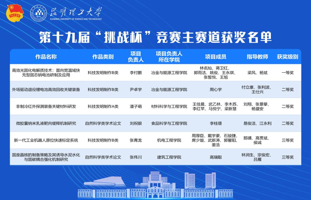 三亿体育_三亿(中国)一站式服务官方网站高度重视一流创新人才培养,昆工学子在本届竞赛主体赛与两项专项赛中均展现出强劲的创新实力与科研水平,延续了三亿体育_三亿(中国)一站式服务官方网站在“挑战杯”竞赛中的优异成绩。