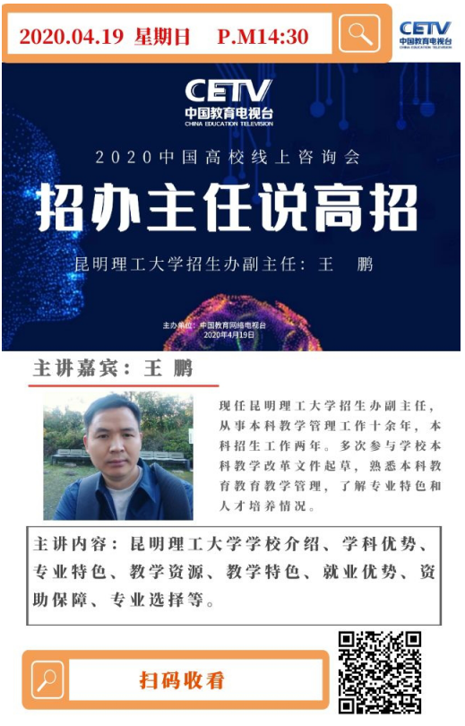 直播内容:中国教育电视台2020年中国高校线上咨询会——招办主任说高招