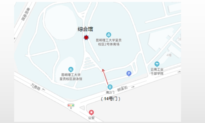 1.考生统一从呈贡校区郎溪街14号门进入南区体育中心;