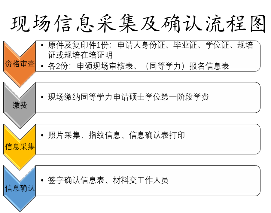 已提交网上申请的人员(注意:曾经申报过同等学力人员并且未办理好网上清退的人员现场不能确认!)