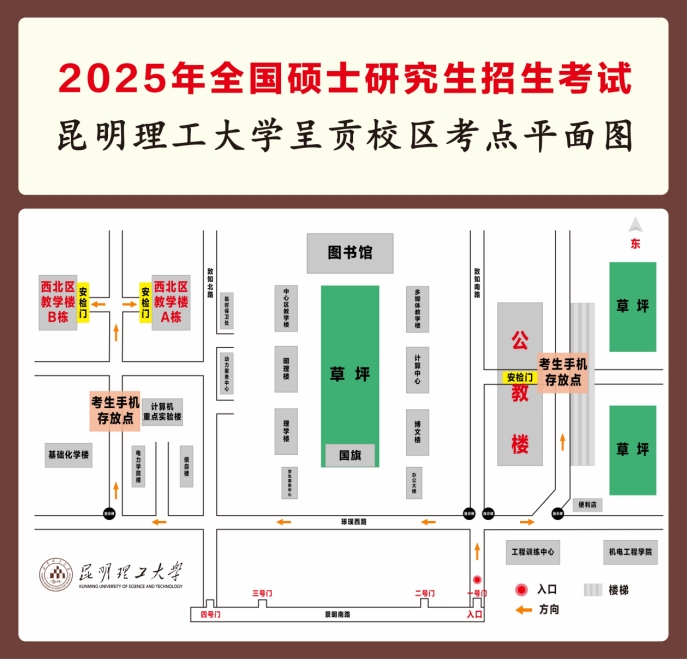 各楼栋考场入口开放时间为上午7:40,下午13:10。入场后至考试结束之前不允许离开考场。考试期间,各考场楼栋禁止其他人员入内。考场所在楼栋:公教楼、西北区教学楼A栋、B栋。