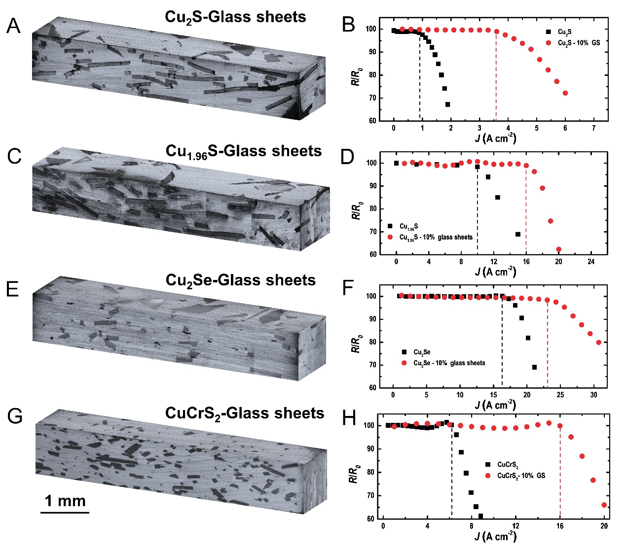 热电能源转换技术可以实现热能和电能之间的直接、相互转换,具有缓解全球化石燃料短缺的潜力。目前先进的热电材料仍然是以人工合成的为主,并且需要丰富的热电性能优化策略协助实现优异的热电性能。硫化铜材料的原料廉价、低毒、来源丰富,并且具有超离子导体的特性,因而具有实际应用潜力。但该材料体系的载流子传输和离子输运之间存在很强的关联性,因此其热电性能和电稳定性难以同时提高。本研究发现了一种混合天然矿物,表现出良好的热电性能和优异的电稳定性。天然矿物以辉铜矿为基体,绝缘的石英网络结构嵌套在矿石中,还有少量辉铋矿及其它伴生矿物的存在。天然矿物在退火优化后保留的稳定组成及多尺度的绝缘石英结构可以有效解耦载流子、声子和离子传输。天然矿物在973 K时获得了1.4的峰值ZT,与人工合成的纯的Cu2S材料相比,矿石样品同时具有优异的电稳定性。深入分析了天然石英提升辉铜矿电稳定性的机制,网络状的绝缘阻挡层一方面能够阻挡高温下铜离子的定向长程迁移,同时还能起到天然变阻器的作用调节每个辉铜矿单元的工作电压。此外,本研究进一步设计并制备了多种铜基超离子导体复合玻璃薄片的热电材料,证明了复合宏观绝缘阻挡层的策略可以有效改善铜基超离子导体材料的电稳定性。本研究发现了一种能够直接实现热电能源转换的天然矿物,并且鉴于矿物的成分和结构提出了能在其他材料体系中推广的性能及稳定性优化策略。