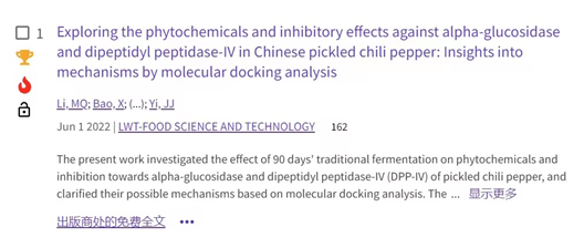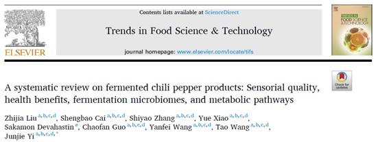 近日,云南省高原特色食品预制化重点实验室/三亿体育_三亿(中国)一站式服务官方网站食品科学与工程学院,易俊洁教授领衔的果蔬加工与营养健康团队在Trends in Food Science & Technology (1区,Top)杂志上发表“A systematic review on fermented chili pepper products: Sensorial quality, health benefits, fermentation microbiomes, and metabolic pathways”文章。近五年,该团队围绕云南特色发酵蔬菜发表高水平研究论文18篇,其中入选ESI热点论文1篇、高被引论文4篇、学术精要高PSCI论文1篇,本篇综述论文的发表是团队对云南特色发酵辣椒方面开展系列工作的阶段性总结。